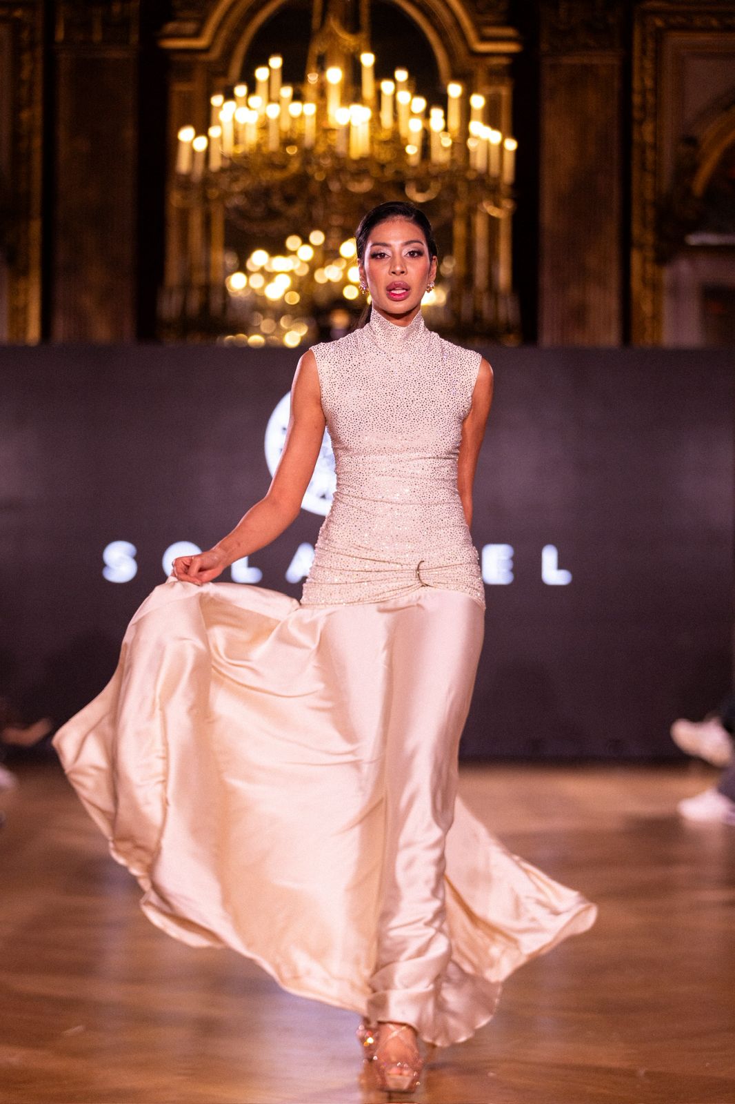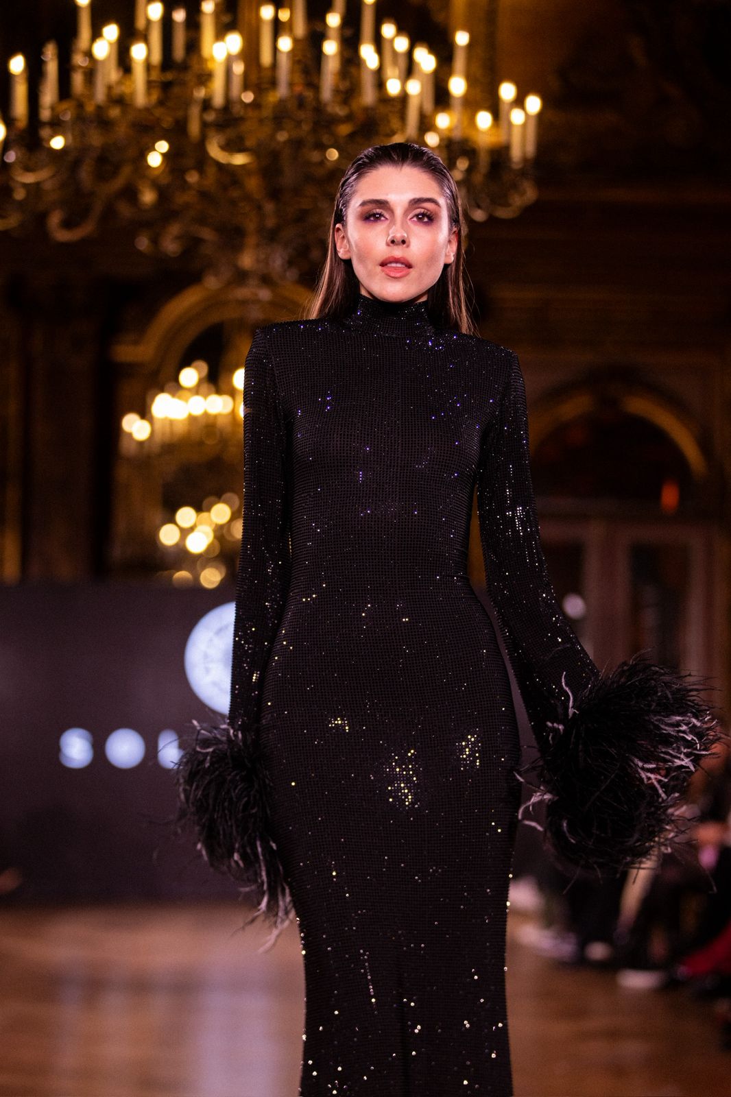 - «Это невероятная роскошь. Кристаллы, приталенные силуэты, перья, высокие разрезы. Все это в духе Ирены Сопрано и ее бренда SOLANGEL.
